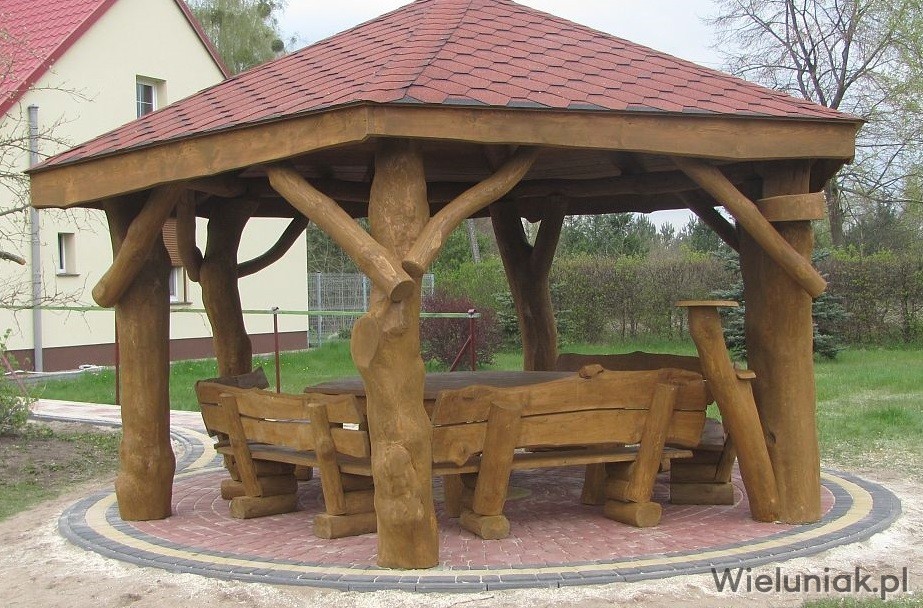 1. Elementy altany wykonane z pni drzew korowanych, suchych, wyszlifowanych, zaimpregnowanych.
