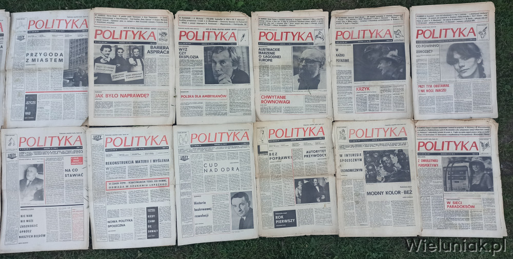 -"Polityka": łącznie 432 gazety, lata 1964-1989, A3, mnw polowa jest w dość dobrym stanie, a połowa w średnim/słabym stanie (podobne mankamenty jak w "Przeglądzie Tygodniowym"), dodatkowo jest ok 42 dodatków (różowo-fioletowe strony) "Polityka -eksport-import", każdy po 2-3 strony; cena za 1 gazetę od 1zł do 20zł w zależności od roku i stanu, a cena za jeden dodatek "Polityka-eksport-import" to 1zł ; sprzedaję jako całość