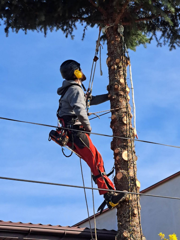 Wycinka drzew trudnych metodą dostępu linowego.