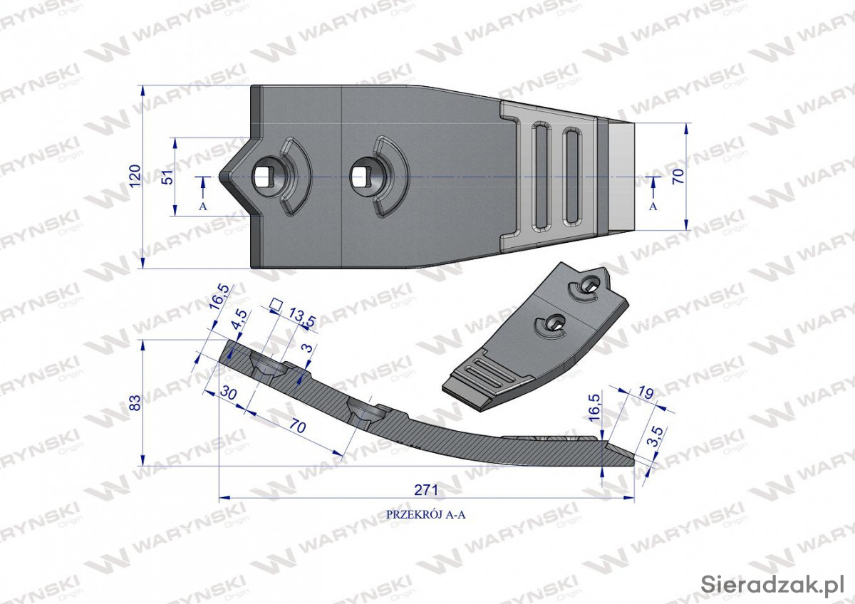 Dziób dwuotworowy agregatu podorywkowego zastosowanie Ap/701 Kos Unia stal borowa