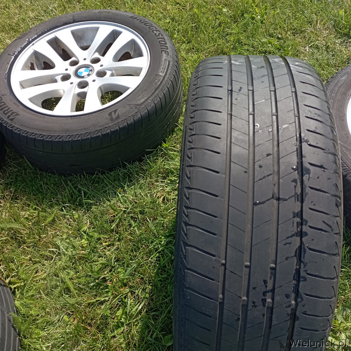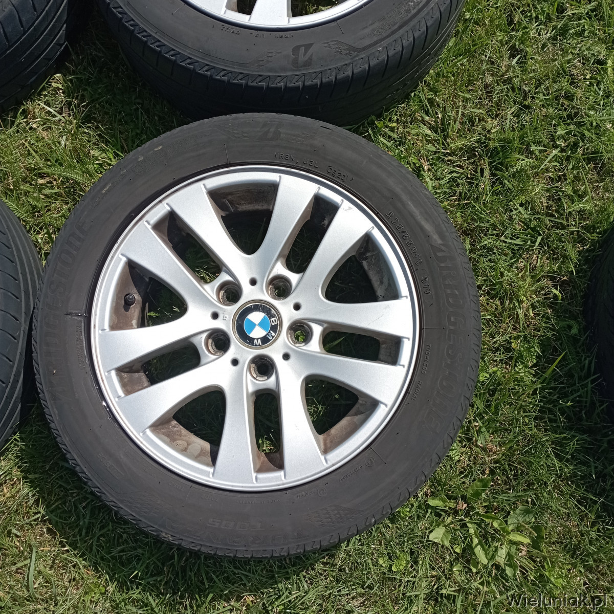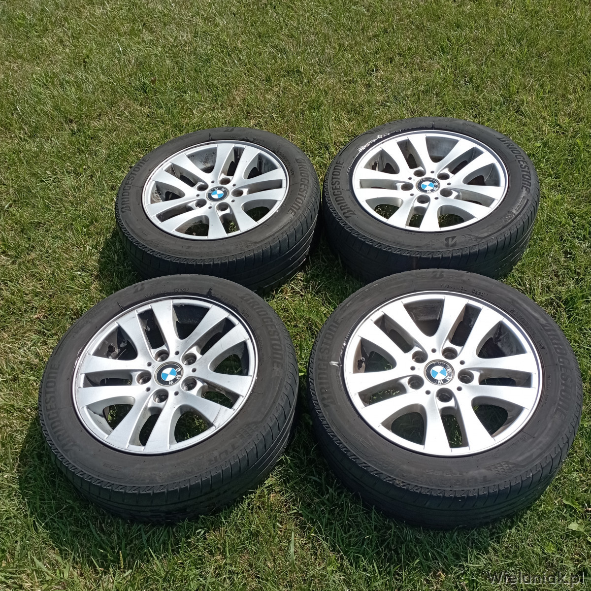 Sprzedam oryginalne felgi aluminiowe BMW E90, E91 z oponami marki Bridgestone Turanza Too5 205/55/R16. Rozstaw śrub 5x120, rocznik opon 2020, bieżnik około 3mm.