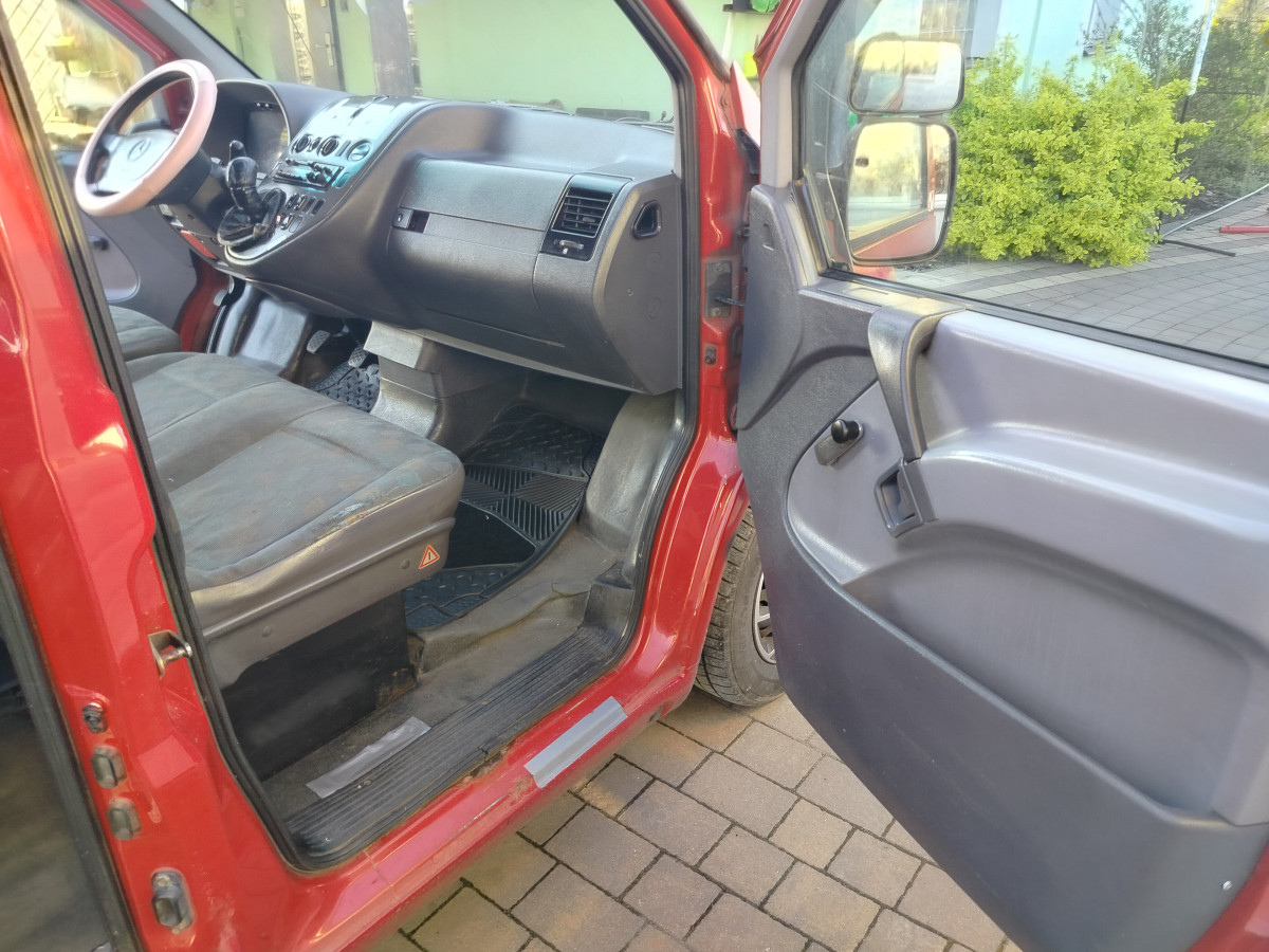 Przegląd techniczny ważny do września 2025 a OC do października 2025. Vito posiada klimatyzację ( niestety nie działa - brak gazu - nieszczelność). Blacharka była naprawiana 7 lat temu i już pryszcze się znajdą.