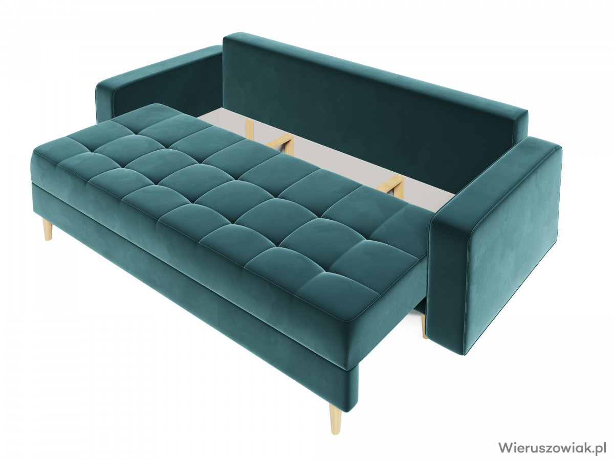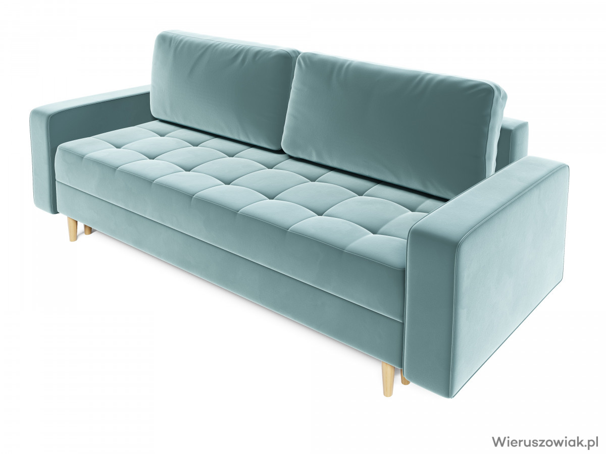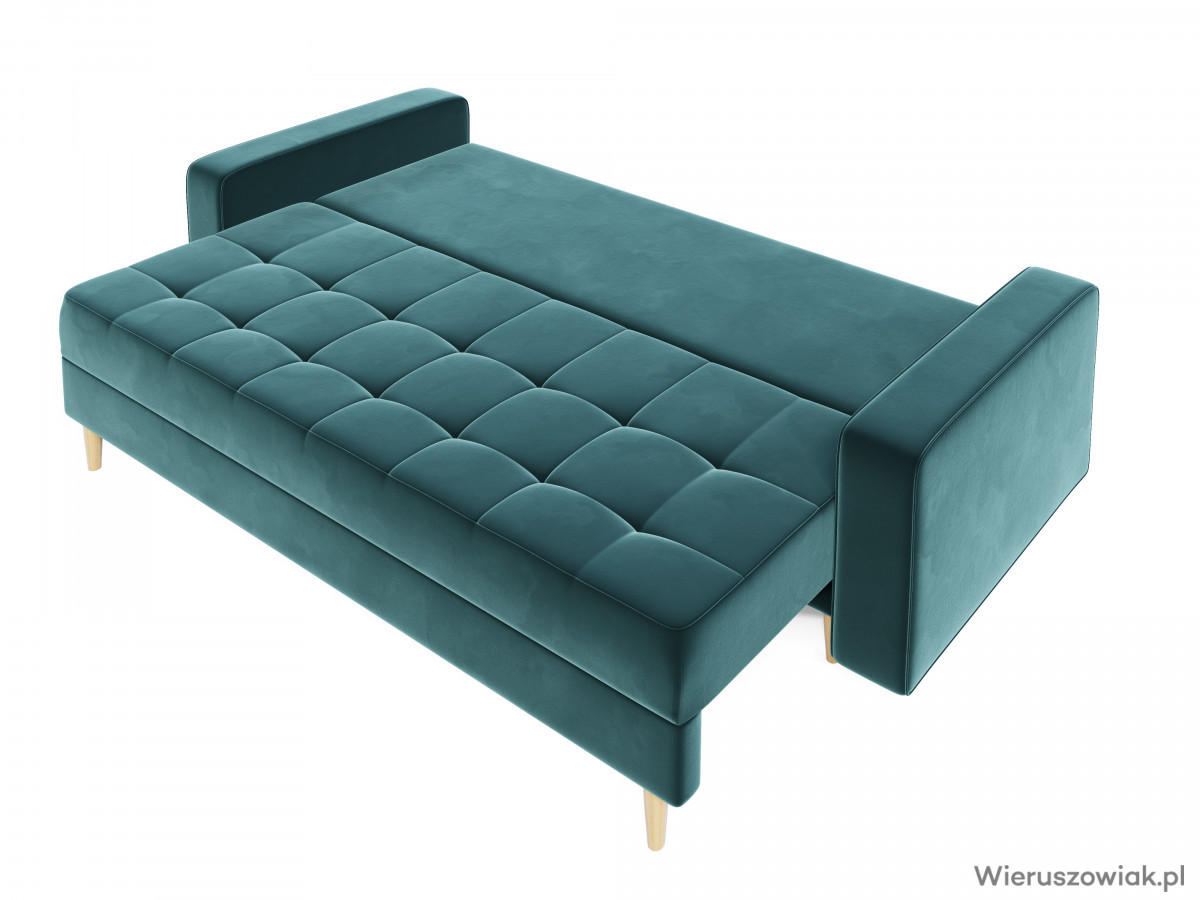 Wyposażona w pojemnik na pościel, sofa Prima ułatwia przechowywanie koców, poduszek i innych akcesoriów, co pozwala utrzymać porządek w przestrzeni.