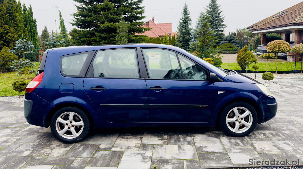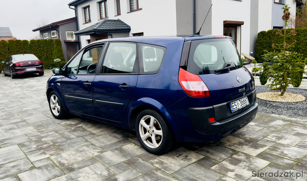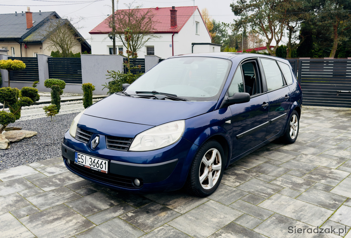 Do sprzedania ładny i zadbany renault grand scenik 1.6 rok 2005 , sprowadzony z Niemiec w 2017r i od tamtej pory użytkowany przez jedną właścicielkę , jest to wersja 7-osobowa , zarejestrowana na 7 osób , lakier bez korozji , spod zdrowy , silnik ładnie pracuje , klimatyzacja sprawna , wnętrze zadbane , hamulce sprawne , rok temu wymienione tarcze hamulcowe i klocki , zawieszenie bez luzów , opony wielosezonowe , wyposażenie ; klimatyzacja , airbag , ABS , wspomaganie kierownicy , elektryczne szyby , elektryczne lusterka , panoramiczny dach , radio , centralny zamek , alufelgi , halogeny , komputer pokładowy , czujnik zmierzchu , czujnik deszczu , 2 karty , dane do sprawdzania w bazie cepik esi36661 vin VF1JM0CDH32733237 data pier rej 18.01.2005