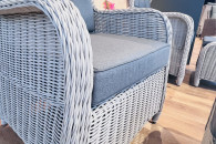 Zestaw mebli ogrodowych Comfort Grey składa się z dwóch krzeseł ogrodowych z podnóżkami oraz stolika kawowego w kolorze Grey. Zestaw wykonany jest z ręcznie plecionego okrągłego rattanu i posiada pasujące poduszki z poszewkami odpornego na UV w kolorze ciemnoszarym, zapewniające najwyższy komfort. Komfort siedzenia jest bardzo wysoki, a lato można w pełni cieszyć się na tych pięknych meblach ogrodowych.