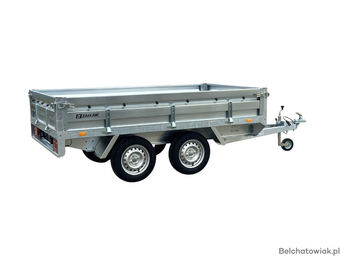 Przyczepy towarowe Zasław to nowoczesna linia przyczep samochodowych wykonanych z najlepszych dostępnych na polskim rynku materiałów. Produkty tej kategorii charakteryzuje m.in.: nowoczesny design burt walcowanych na zimno, wytrzymałe zaczepy burtowe z kompensacją oraz dyszel prowadzony od osi (o DMC 750kg) dla większej wytrzymałości konstrukcji. Przyczepy towarowe Zasław w standardzie wyposażono w instalację elektryczną. Wszystkie elementy ram cynkowane są ogniowo, co gwarantuje ich trwałość i dużą odporność na korozję. Model HL265T posiada dodatkowo otwieraną przednią burtę oraz system szybkiego demontażu burt. Wyposażony jest także w: koło podporowe z obejmą, rolki mocujące plandekę oraz uchwyty mocujące towar i ramkę tablicy rejestracyjnej.