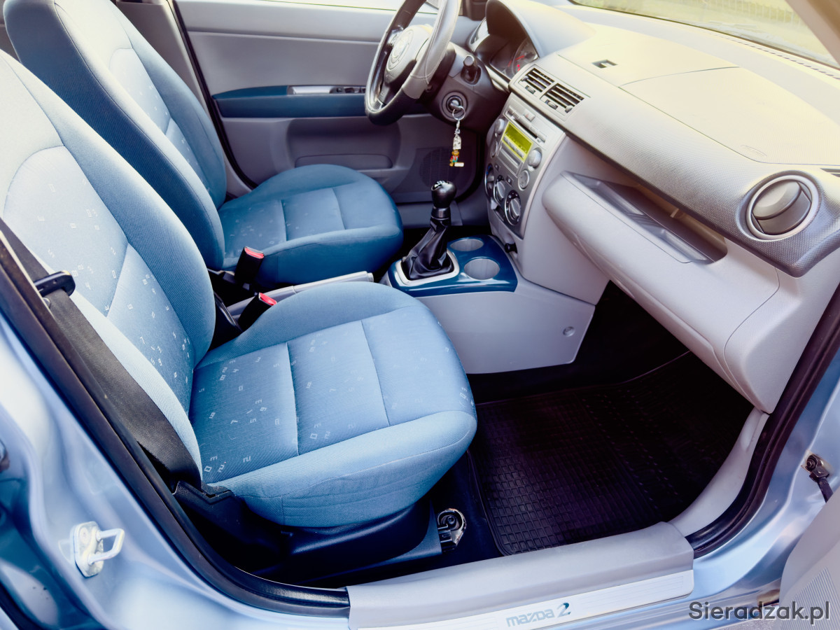 Do sprzedania ładna i zadbana Mazda 2 1.4 80KM , rok 2005 , sprowadzona z Niemiec w 2022r , w Niemczech jeden właściciel , w kraju użytkowana przez seniora 92-letniego , cały czas garażowana , bez korozji , spód , progi zdrowe , lakier ładny , wszystkie szyby oryginalne - łącznie z przednią , wnętrze wygląda jak w kilkuletnim aucie , pedantycznie zachowane , tapicerka jak nowa , zawieszenie bez luzów , silnik ładnie pracuje , najlepsza jednostka napędowa montowana w tym modelu , trwała i niezawodna , auto posiada bardzo mały przebieg , zdjęcia przedstawiają sprzedawany pojazd , real foto , wyposażenie : 8xairbag , 4xelektryczne szyby , elektryczne lusterka , ABS , klimatyzacja , radio +CD , centralny zamek , hak , komputer pokładowy , skórzana kierownica , elektryczne lusterka , dane do sprawdzania w bazie cepik : EZD 7U63 Vin JMZNC2WPJN4T46704 data pier rej 17.01.2005 Możliwość sprawdzania u dowolnego mechanika , serwisie na terenie Zd woli , badanie techniczne 11.2026 OC 01.2027